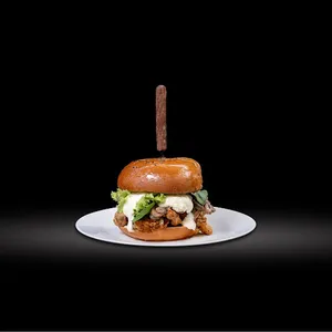 Queso azul, cebolla estofada, champiñones salteados, mix de verdes y mayonesa de la casa
